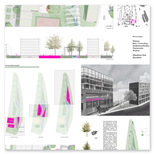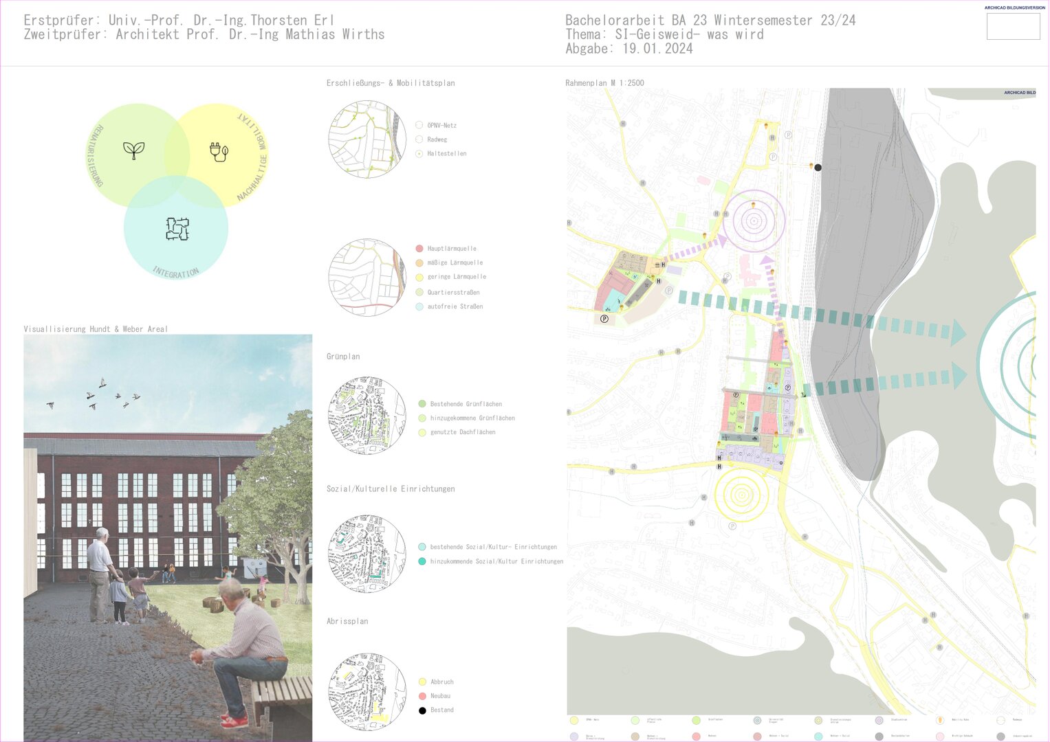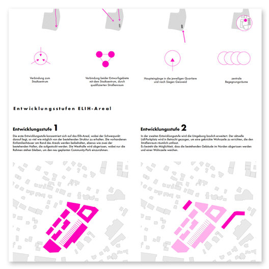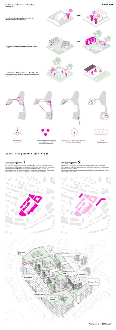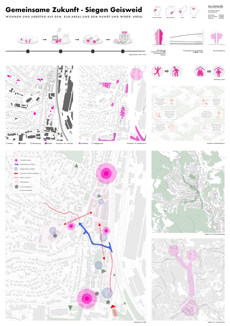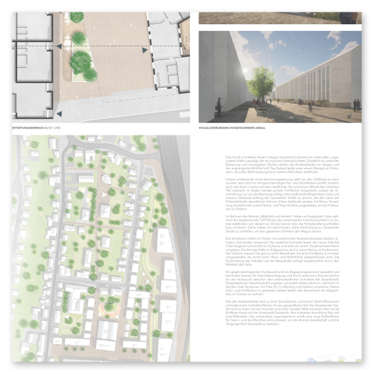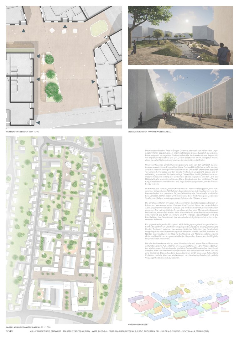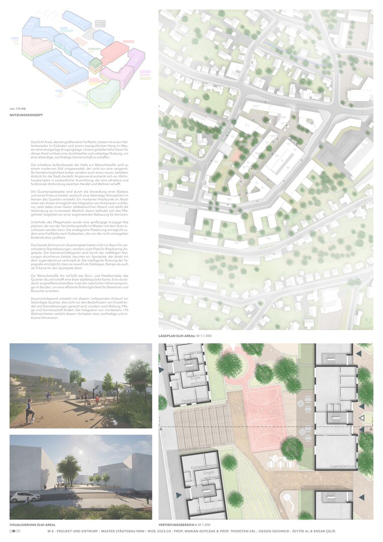 Auf den Arealen ELIH und Hundt & Weber konnten so die Studenten auf über 45.000m² den Stadtteil Geisweid maßgeblich neu gestalten. Die Entwürfe werden dem Engagement der Familie Elmaağaçlı neue Impulse und Ansätze geben.