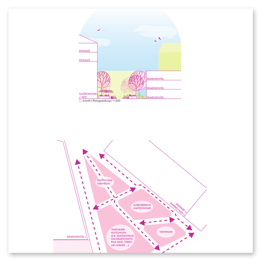 Wohnungen, Kita, Aldi, Pflege-Hotel, Inklusives Wohnen