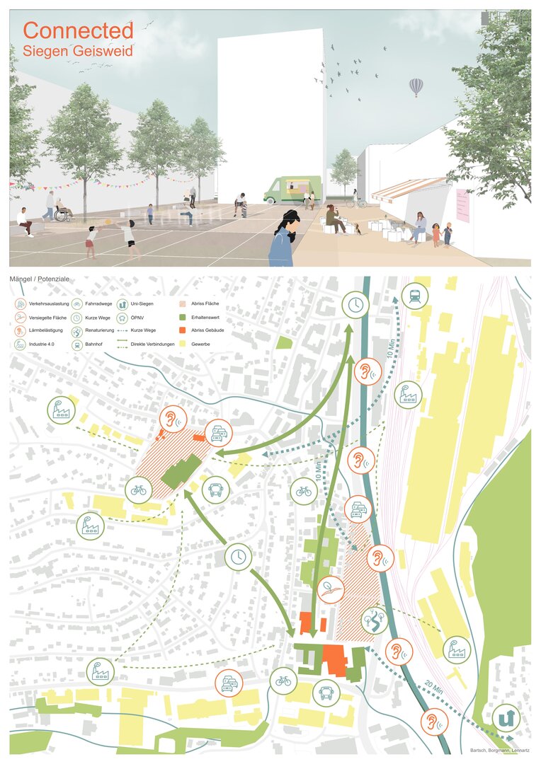 Aus der Entwicklung des ELIH Quartiers entstand der studentische Wettbewerb für Stadtentwicklung Geisweid - 4 Teams erhielten den 1. Preis